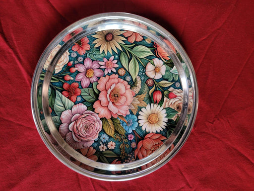 This 6-inch Indian art plate crafted from German silver combines traditional artistry with durable metalwork. Its intricate design showcases skille...