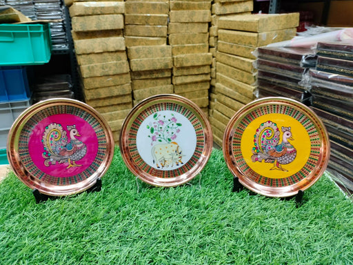 This 4-inch round Indian art plate features a rose gold finish that highlights its intricate traditional design. Expertly crafted, it offers both a...