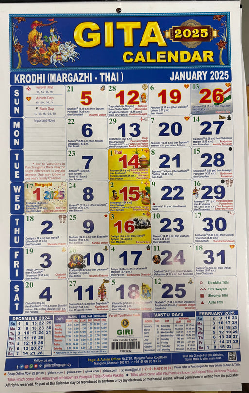 Gita Calendar | Gita Monthly Calendar