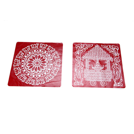 Rangoli - 4 x 4 Inches | Plastic Material/ Kolam Designs for Puja Room Decor/ Assorted Designs