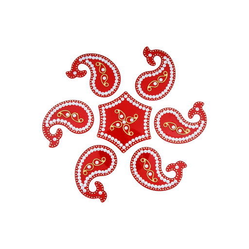 View full detailsKolam Sticker - 4 x 4 Inch | Rangoli Sticker for Home & Pooja Room Decor/ 6 Pieces/ Maroon Colour