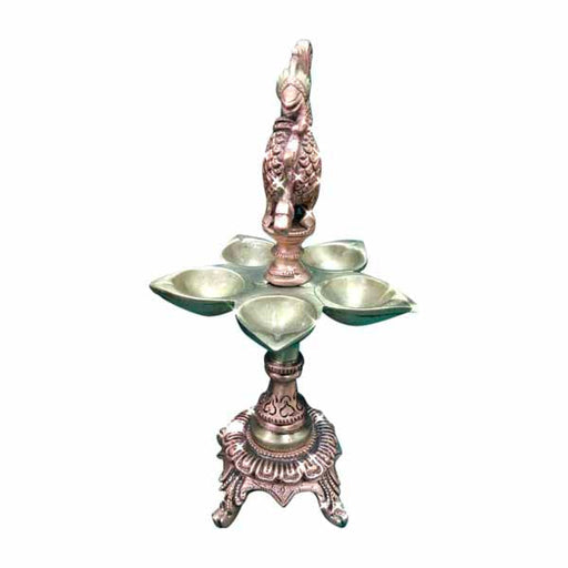 Kuthu Vilakku - 10.5 X 4 Inches | Annam Design Brass Lamp/ 5 Face Vilakku/ Deepam For Pooja And Lighting