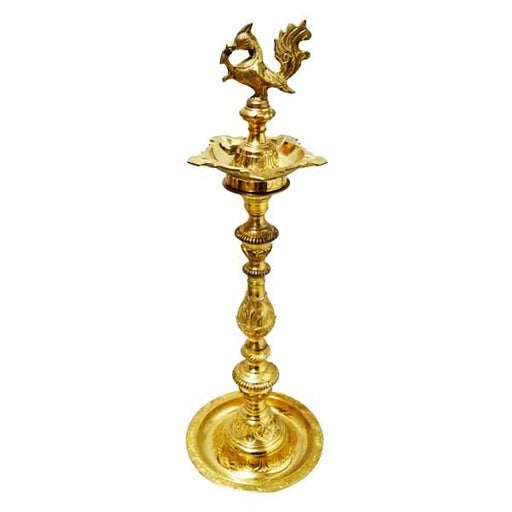 Brass Lamp - 25 Inches | Diya/ Annapakshi Design Kuthu Vilakku/ Deep for Puja/ 4.180 Kgs