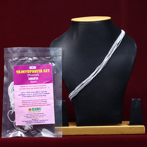 GiriAus Yajnopavita Set - Smarta - 6 Pieces | Janau/ Sacred Thread/ Poita/ Poonal for Pooja/ White Thread